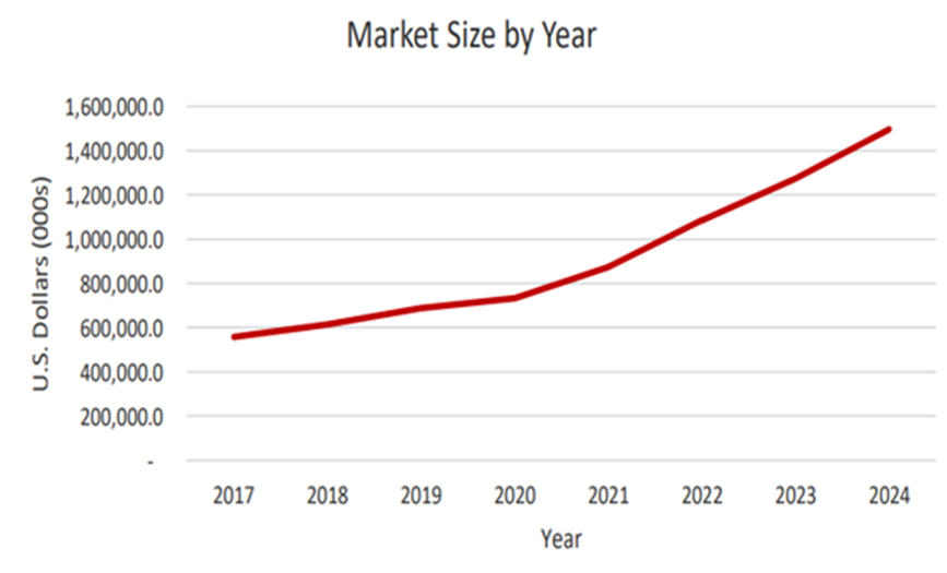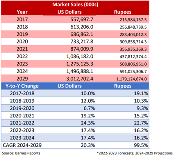 The market for electric buses in India is estimated to be $1,275.1 million dollars in 2023 and is expected to change by 17.4 percent from 2023 to 2024. Considering conversion rate of USD to INR, the market will be Rs. 5,08,807 million in 2023 and is forecast to change by 16.2 percent from 2023 to 2024.